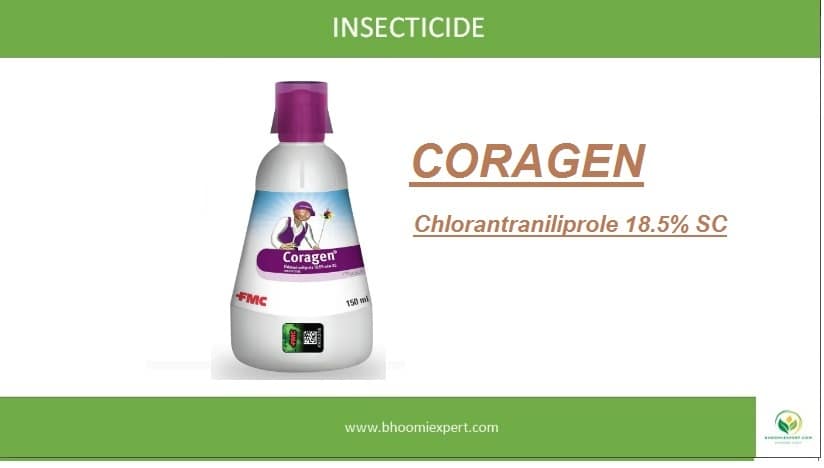 FMC Coragen insecticide (Chlorantraniliprole 18.5) provides systemic and contact-based action.